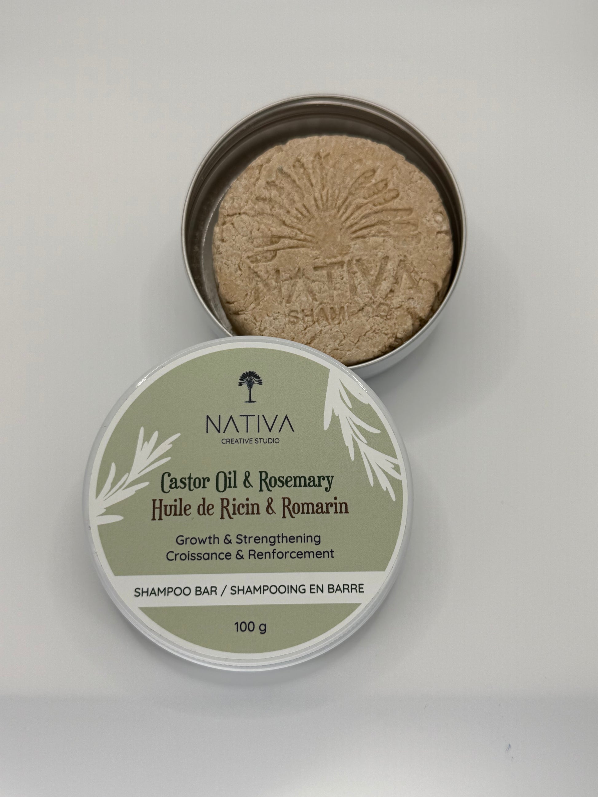 **Usage**: Wet the bar and rub it between your hands or directly onto damp hair to create a rich lather. Massage into the scalp and rinse thoroughly.