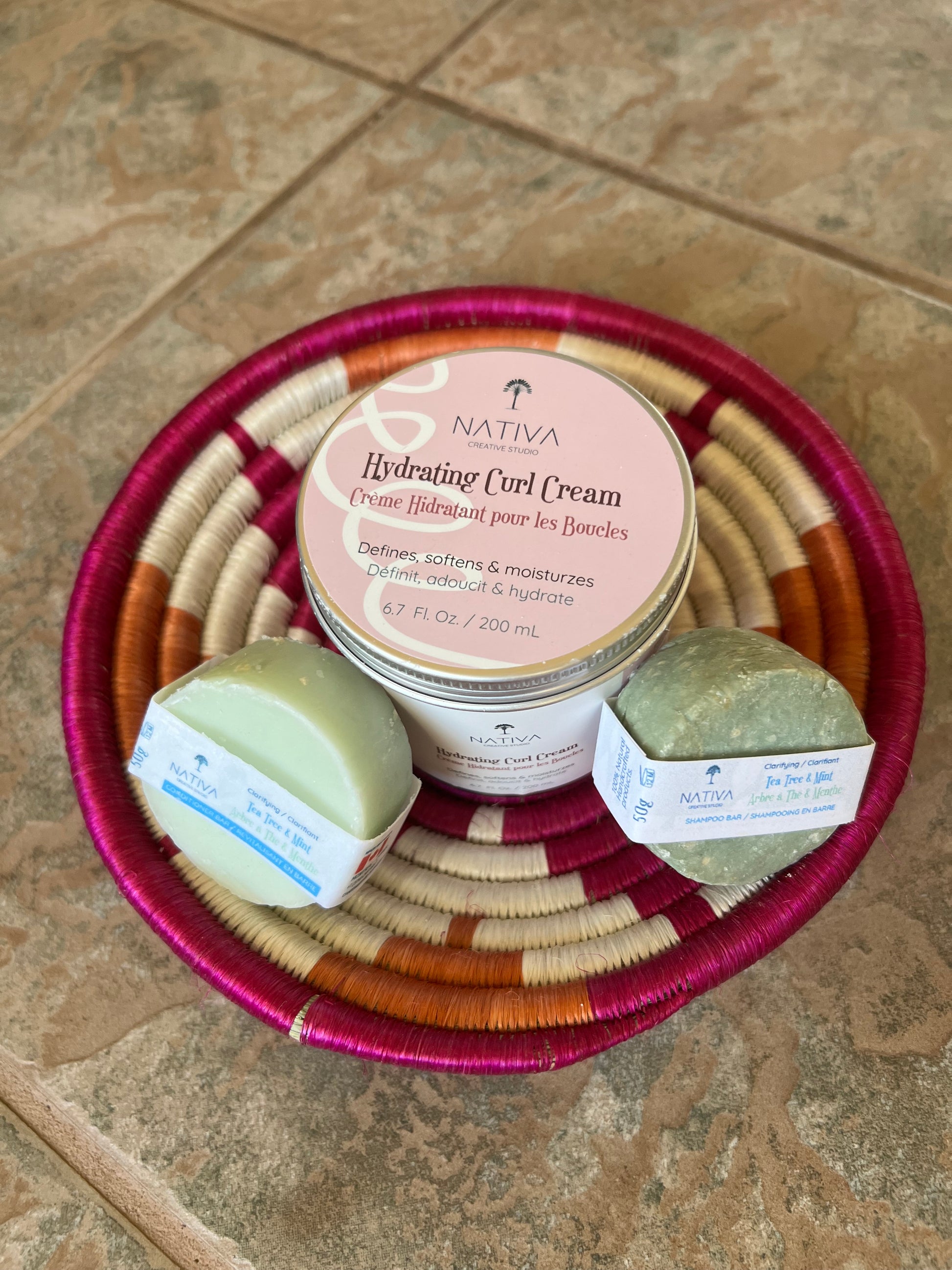 The set includes a collection of premium haircare essentials, perfect for pampering yourself or a loved one. The bowl, handwoven with love and skill, serves as a lasting reminder of the empowering artistry and community spirit of Rwanda's women artisans.