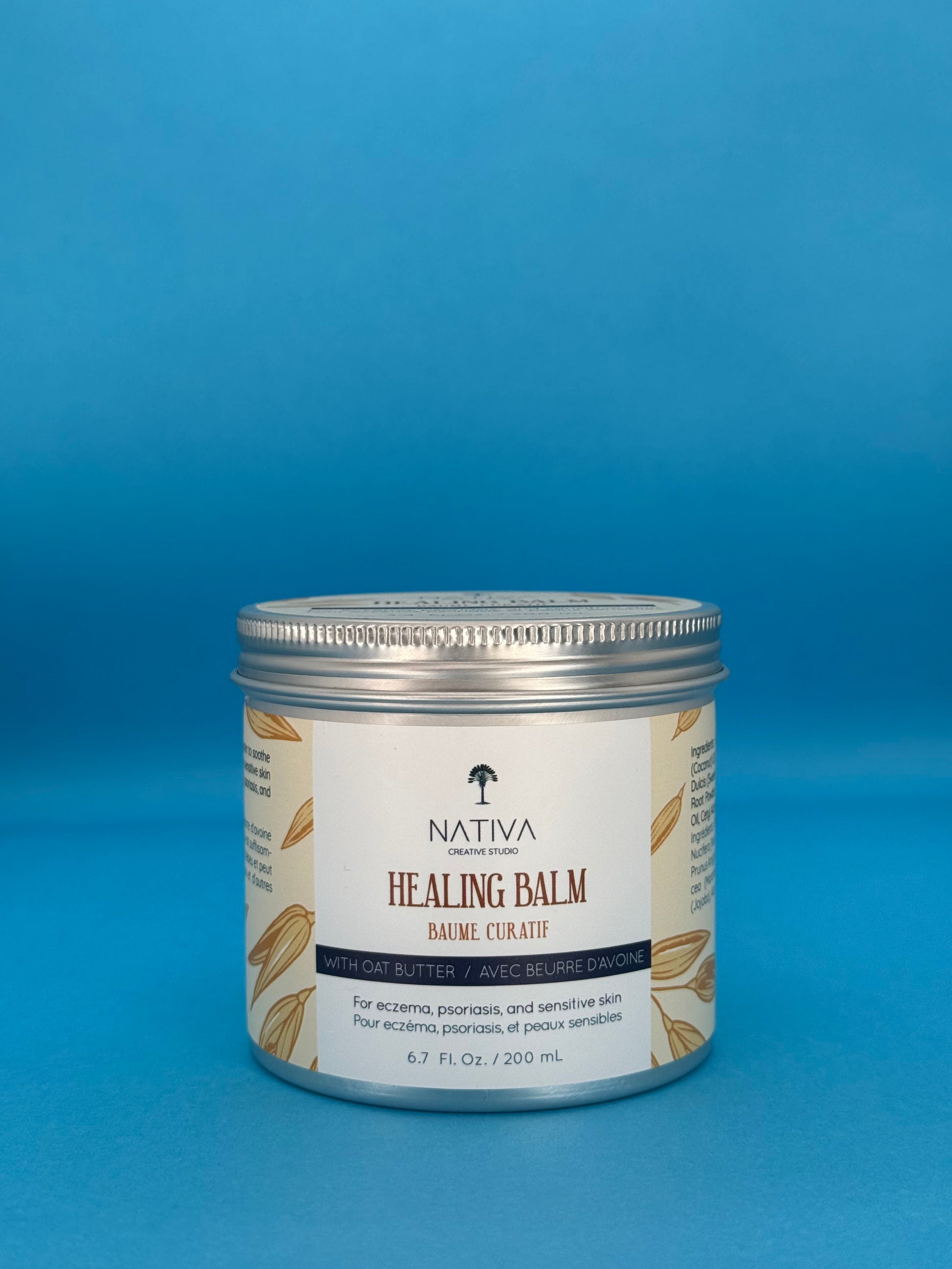 Soothe and nourish delicate skin with our Healing Balm, a gentle yet powerful remedy for sensitive and problematic skin types. Crafted with a rich blend of oat butter, known for its calming and moisturizing properties, this balm helps to restore balance and hydration to dry, irritated, or inflamed skin. Ideal for conditions like eczema, psoriasis, and other skin sensitivities, it creates a protective barrier that locks in moisture while alleviating redness and discomfort.